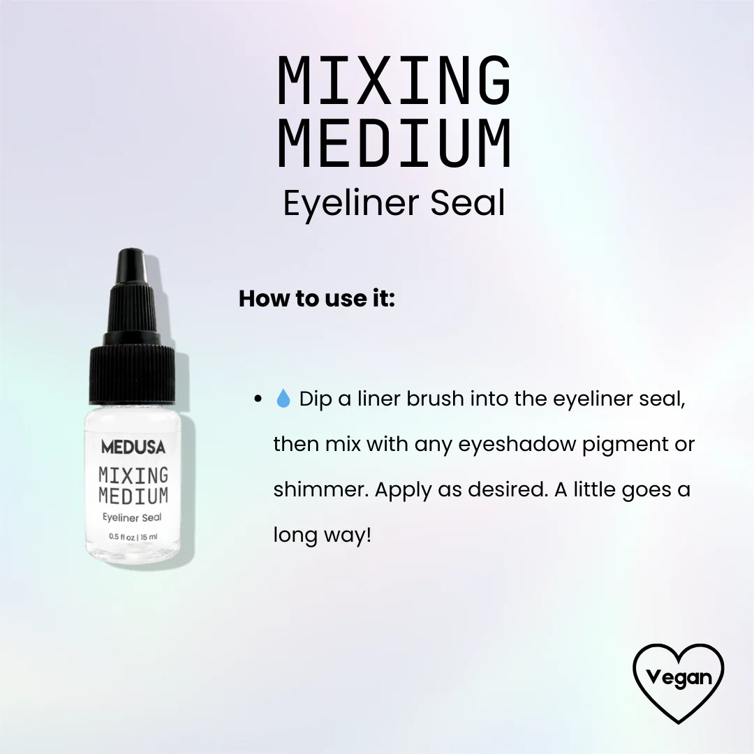 Transform any eyeshadow into a smudge-proof liquid liner with our Eyeliner Seal, mixing medium. This clear, multi-use formula works like magic—just a drop turns your favorite pigments into bold, budge-proof eyeliner or intense liquid shadow. Perfect for creating sharp wings, graphic liner looks, or dramatic foiled lids.