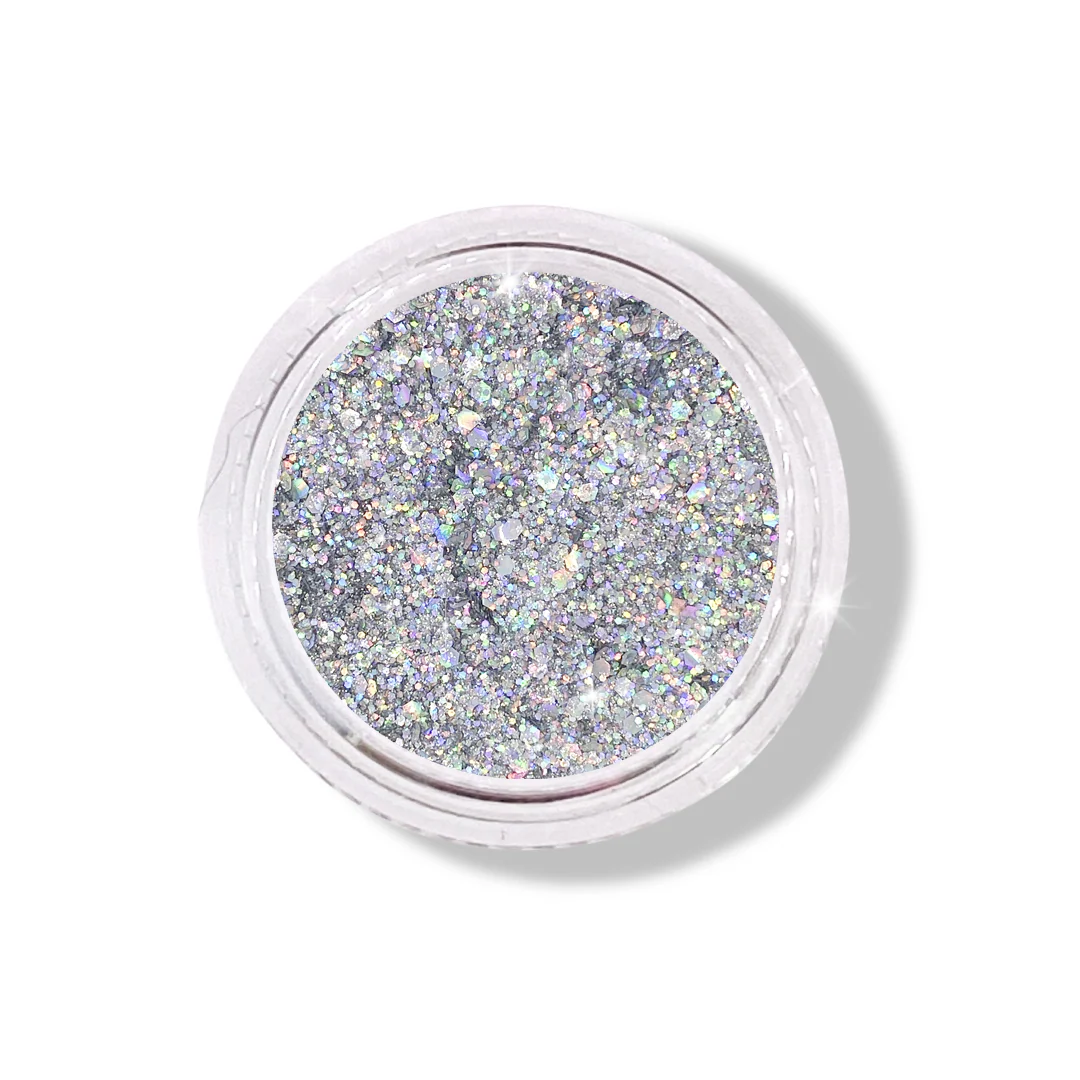 Medusa's Make-Up Glittergasm glitter powders are truly like galaxy dust! This cosmetic grade mix of micro sparkle and chunky sized glitter particles can be great for party makeup, festival makeup and cheerleader makeup and roller derby. Can be applied to eyes, lips and face.